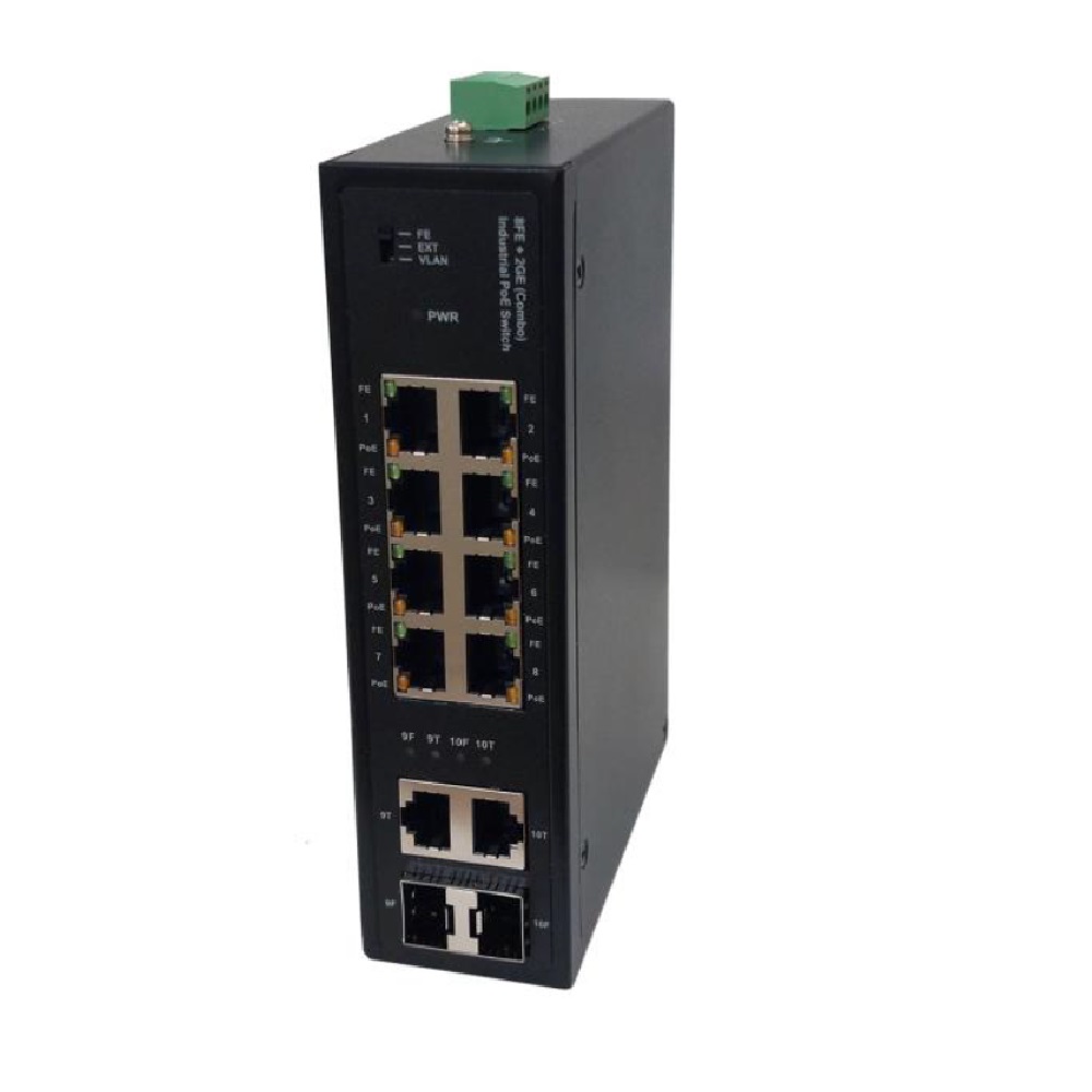 The DP1082CG also features 250meter Ethernet extension, and VLAN functions. The slide switch on the front panel is to select FE, EXT, and VLAN functions for Ethernet. The FE is to set for all the 8 port as standard 10/100Mbps Fast Ethernet. The EXT is to set for each of the 8 port to link at 10Mbps Ethernet to support up to 250meter cable extension for CAT5e cable. The VLAN is to set for each of the 8 ports as 8 individual isolated ports and to communicate only with the gigabit COMBO ports. With the terminal block connector, it may provide PoE for 48VDC~57VDC up to 120W/240W power budget. For each of the 8 ports with PoE function, it all supports over-current, over-voltage, and over-temperature protections This slim switch is designed with Wall-mountable and/or DIN rail mountable, making installation simple and easy. It meets with critical network environment with IP30 enclosure and test under extensive Industrial EMI and Safety standards. It can be used in extreme environments with an operating temperature range of -40°C to 75°C.Key Features